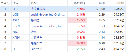 华盛资讯6月17日消息,美股早盘,新能源汽车股多数走强,截至发稿,法拉第未来涨近5%,Lucid $LCID 涨超2%,特斯拉、Rivian $RIVN 涨近2%,蔚来、小鹏汽车等跟涨,理想汽车跌超2%。