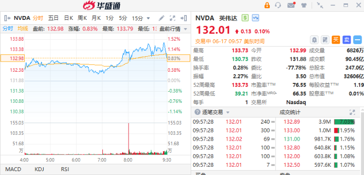 截至发稿,英伟达涨幅收窄,此前一度涨超1%,总市值超过苹果,居美股第二。