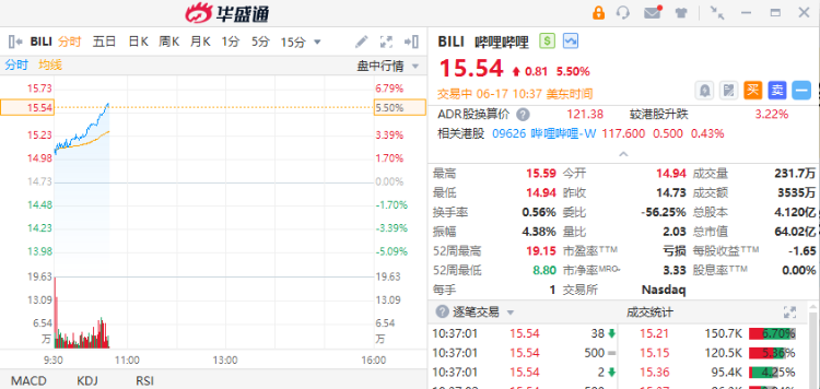 华盛资讯6月17日消息,美股早盘,哔哩哔哩涨幅扩大至5.5%,消息面上,摩根士丹利发表研究报告指,哔哩哔哩代理发行的游戏《三国:谋定天下》推出首日,于iOS应用商店的总收入排名已达到第三位,该行认为,《三国:谋定天下》的商业化程度较低、简化玩法及具创意的英雄系统,再加上游戏行业近年来一直缺乏一款优秀的SLG新作,预期将推动该游戏的表现。考虑到哔哩哔哩首次推SLG作品,预期首年收入达10亿元人民币,给予美股目标价14美元,评级为“与大市同步”。