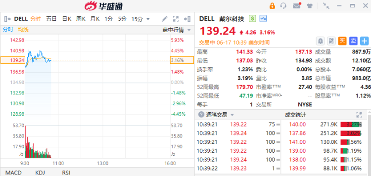 戴尔科技涨超3%,摩根士丹利分析师Erik Woodring维持戴尔买入评级,维持目标价155美元,并列为首选。
