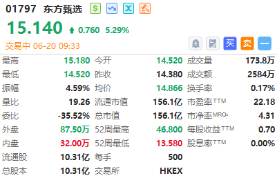 东方甄选盘初大涨超5%,现报15.14港元/股,此前披露自营品的业务进展。