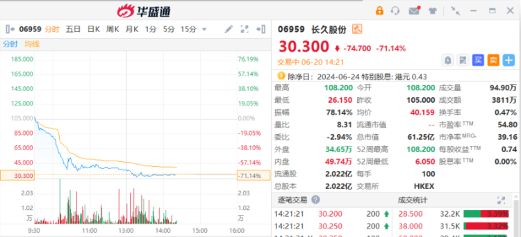 就在刚才,港股市场“浓眉大眼”的大牛股——长久股份突然暴跌,该股最大跌幅超过75%。而年内,长久股份最大涨幅达17倍。那么,究竟发生了什么?