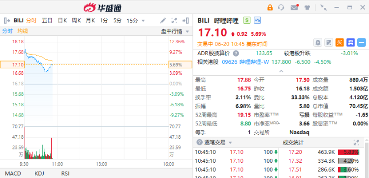 哔哩哔哩涨近6%,近期获多家华尔街大行上调目标价。