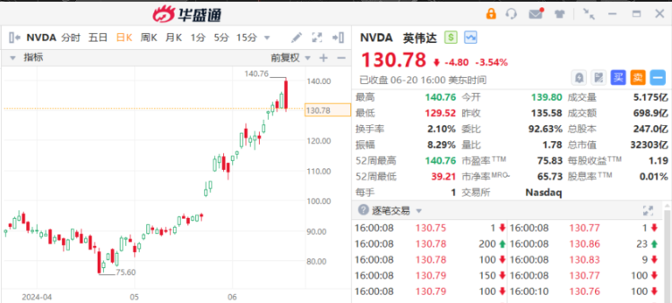 不过,英伟达最终还是收跌3.54%,报130.78美元,总市值3.22万亿美元。