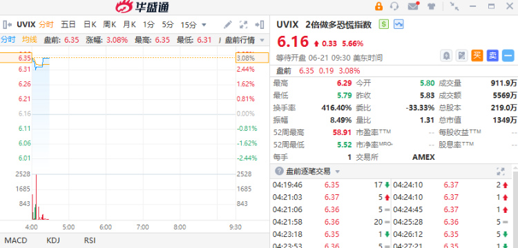 2倍做多恐慌指数 $UVIX 盘前涨超3%。