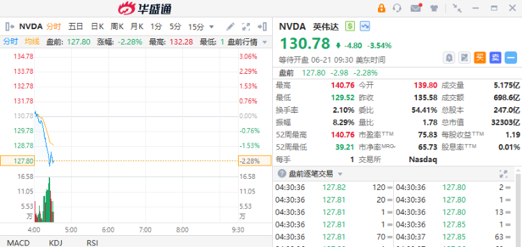 半导体概念股盘前多数走弱,英伟达跌超2%,博通、意法半导体跌超1%。