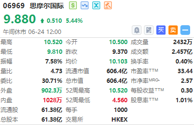 受益于FDA近日发布的利好,港股电子烟龙头之一的思摩尔国际(06969.HK)盘中一度大涨超12%。截至午盘,涨5.44%,报收9.88港元。