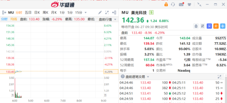 美光盘前跌超6%,业绩指引难达华尔街“超高预期”+HBM芯片产能受限。