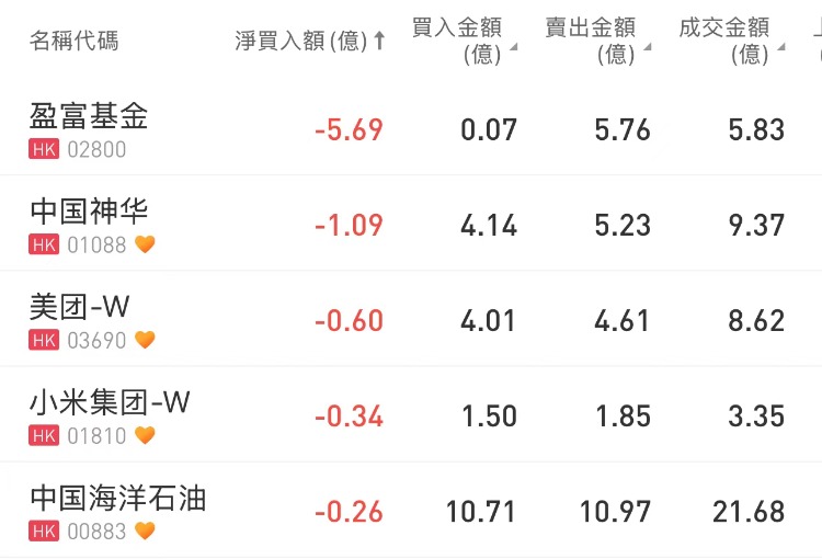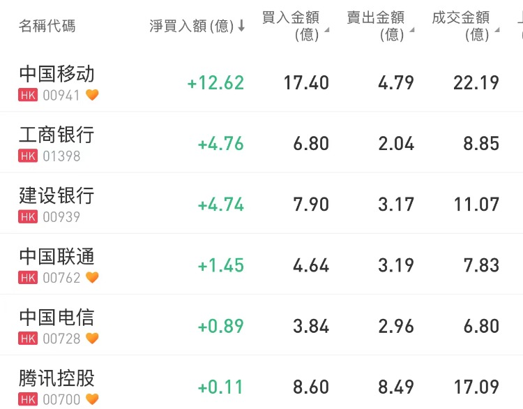 南下资金今日净买入中国移动12.62亿港元、工商银行4.76亿港元、建设银行4.74亿港元;净卖出盈富基金5.69亿港元、中国神华1.09亿港元。