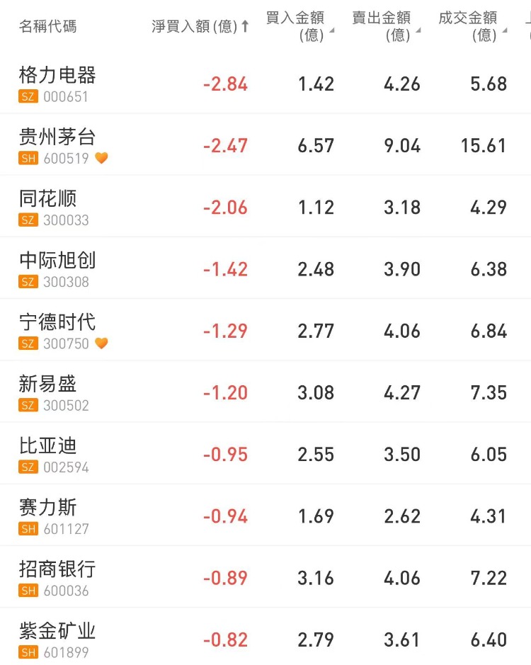 北向资金今日净卖出39.66亿元。格力电器、贵州茅台、同花顺分别获净卖出2.84亿元、2.47亿元、2.06亿元。美的集团净买入额居首,金额为2.72亿元。