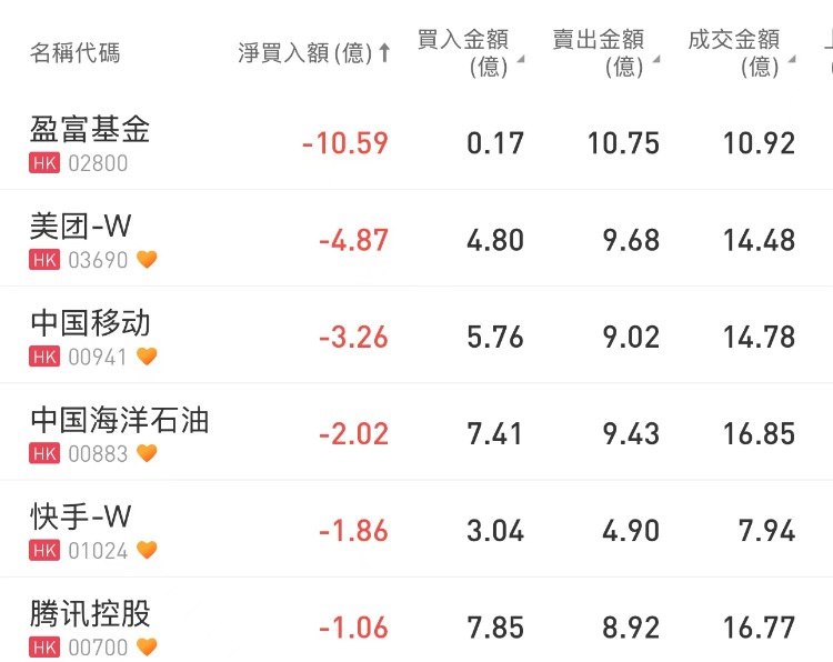 南向资金净买入工商银行,净卖出盈富基金