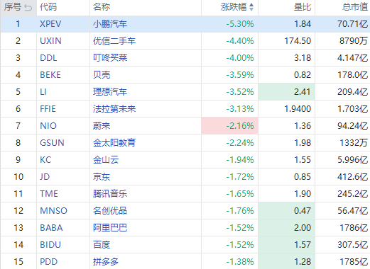 华盛资讯7月8日消息,美股早盘,热门中概股多数走低,截至发稿,小鹏汽车跌逾5%,优信二手车跌超4%,贝壳、理想汽车跌超3%,蔚来跌超2%,金山云、京东、阿里巴巴、百度、拼多多等跌超1%。