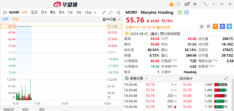 生物技术公司Morphic飙涨逾75%,礼来公司同意以约32亿美元收购美国生物制药公司Morphic Holding Inc.,以获得治疗炎症性肠病和其他慢性疾病的实验性疗法。两家公司在7月8日的一份声明中说,礼来将以每股57美元的价格收购总部位于马萨诸塞州沃尔瑟姆的Morphic公司,该价格比上周五的收盘价高出79%。