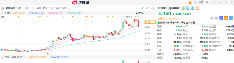 苹果概念股普遍上扬,截至发稿,鸿腾精密反弹逾13%,昨日暴跌14%;比亚迪电子涨4.35%;高伟电子涨超4%;富智康集团涨3.7%;瑞声科技跟涨。