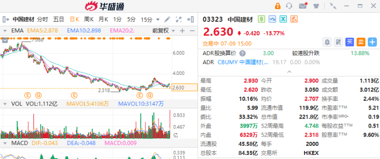 相反,中国建材( 3323 )发盈警,料中期转蚀20亿人民币,股价急泻14%,低见2.62港元,如果认为股价「跌过龙」,可留意Call轮( $25144.HK ),行使价4.5港元,实际杠杆逾8倍,11月中到期,适合短线博反弹,但由于股价仍然弱势,投资者需要控制注码及严守止蚀。