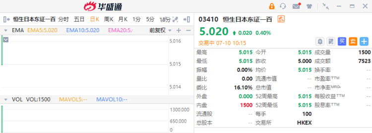 7月10日,恒生日本东证100指数ETF( $03410.HK )正式登陆港交所,该ETF是一个宽基指数ETF,追踪的是日本东证100指数。