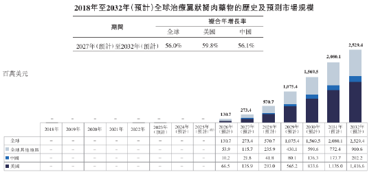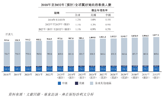 全球范围内,翼状胬肉患者群体规模持续膨胀,据弗若斯特沙利文报告预测,至2032年,全球患者人数将突破10亿大关,中国市场亦预计达到1.6亿。伴随这一趋势,翼状胬肉药物治疗市场展现出蓬勃生机,预计在2027-2032年间,市场空间将以惊人的56.0%复合年增长率扩张。