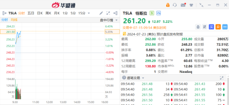 特斯拉 $TSLA 涨幅扩大超5%。消息上,特朗普遭枪击后不久,马斯克在社交媒体平台X发声正式支持特朗普。马斯克表示,“我完全支持特朗普并希望他早日康复。”此前几个月,人们一直在猜测马斯克是否会支持他。日前有报道称马斯克向一个致力于帮助特朗普入主白宫的超级政治行动委员会捐款。