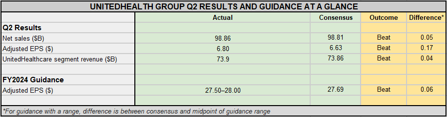 联合健康(UNH.US)公布了一份超预期的第二季度业绩,不过,这家保险公司衡量医疗成本的一个关键指标也高于预期。
