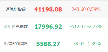 美股三大指数收盘涨跌不一,道指涨0.59%,续创新高;纳指跌2.77%,创2022年12月以来最大跌幅;标普500指数跌1.39%,创4月30日以来最大单日跌幅。费城半导体指数大跌6.81%,创2020年3月以来最大单日跌幅。