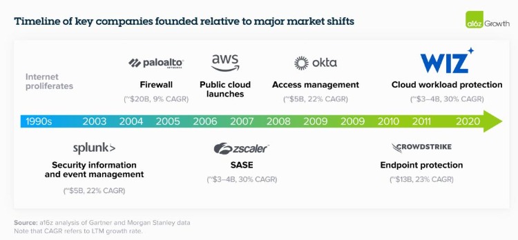 进一步结合当下趋势的是,在云和 AI 的交汇处构建安全平台。有投资机构认为 AI 是「安全问题的下一个浪潮」。像微软这样的巨头正在与 Palo Alto Networks 和 CrowdStrike 等安全巨头竞争,建立云安全平台,而 AI 的崛起在这场战斗中带来了重大变革。