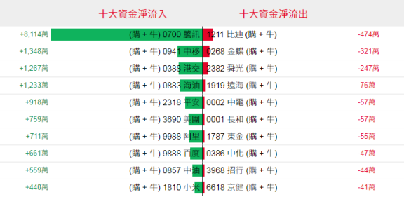 好仓(认购证及牛证)方面,过去一周,腾讯控股、中国移动、港交所、中海油等相关好仓分别约8114万、1348万、1267万及1233万港元资金净流入;比亚迪股份、金蝶国际、舜宇光学科技等相关好仓怎录少量资金净流出套现。