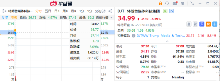 特朗普媒体科技集团 $DJT 涨超5%,Phunware $PHUN 涨超3%,Rumble $RUM 涨1%。