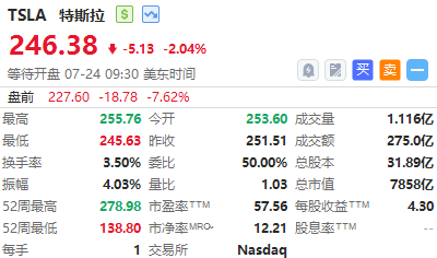 特斯拉跌超7%,2倍每日做多特斯拉ETF-Direxion $TSLL 跌超15%,而其反向杠杆ETF,每日两倍做空特斯拉ETF-GraniteShares $TSDD 大涨超15%。消息面上,特斯拉Q2利润两位数剧减、不及预期,平价车等新车仍有望明年上半年投产,Robotaxi推迟问世至10月。