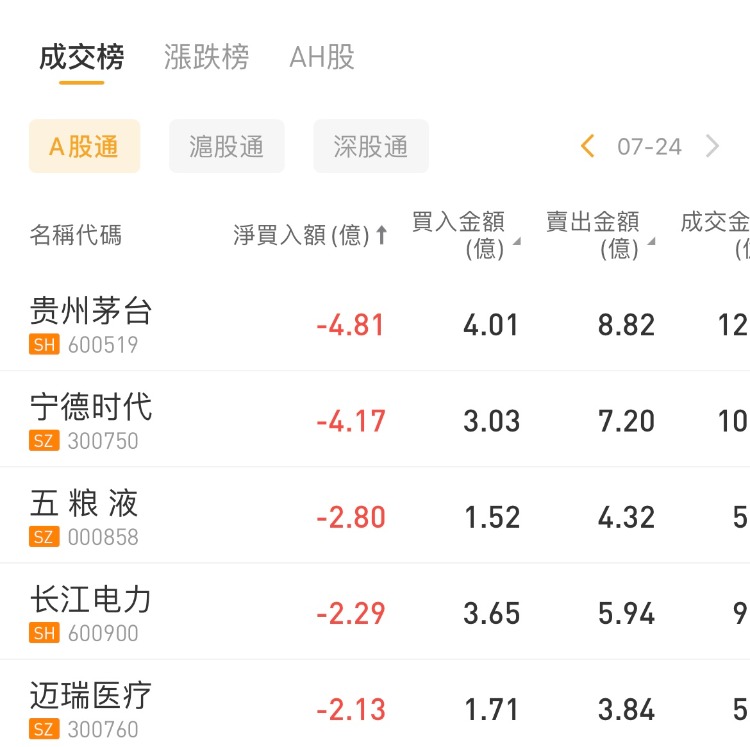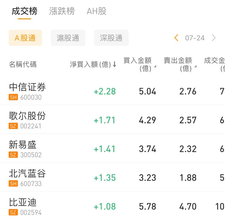 北向资金加仓中信证券,减仓贵州茅台