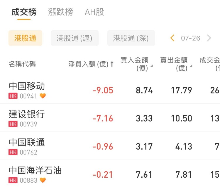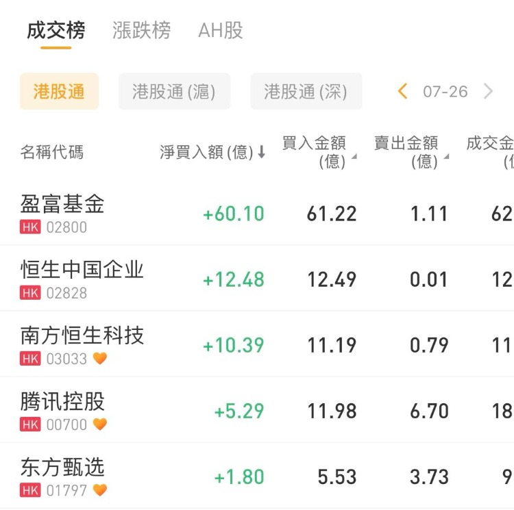 盈富基金、腾讯控股、东方甄选分别获南下资金净买入60.1亿港元、5.29亿港元、1.8亿港元;中国移动、建设银行遭净卖出9.05亿港元、7.16亿港元。