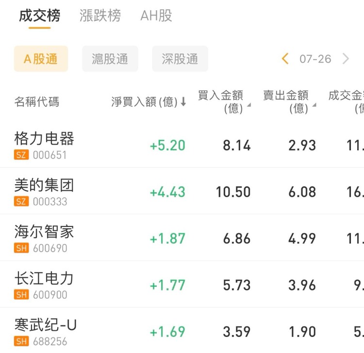 北向资金加仓格力电器,减仓贵州茅台