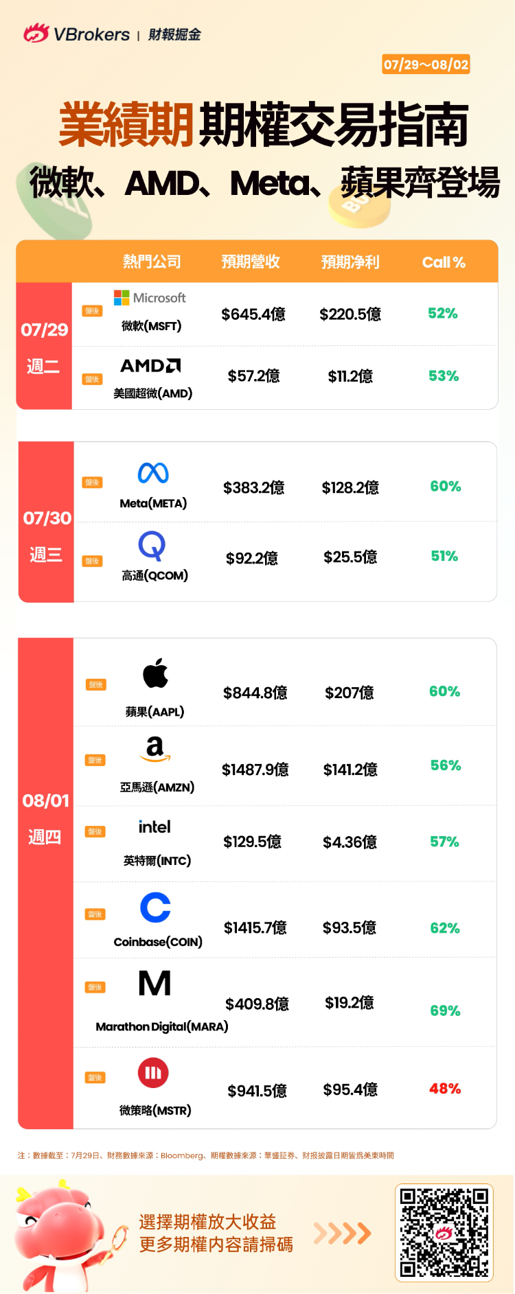 此外,受到在特朗普在周末比特币大会演讲表现,备受市场关注的加密货币概念股Marathon Digital $MARA 、Coinbase $COIN 、微策略 $MSTR 也将在本周迎来Q2大考。