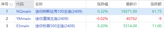 三大期指周二盘前涨跌不一,截至发稿,纳指期货 $NQmain 涨0.32%,标普500指数期货 $ESmain 涨0.20%,道指期货 $YMmain 跌0.02%。