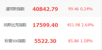 纳指收涨2.64%,英伟达大涨近13%