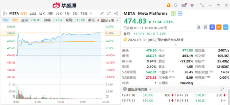 - 盘后大涨超7%!Meta二季报和下季指引超预期