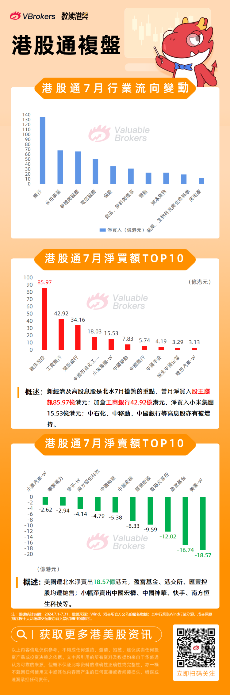 北水7月劲扫腾讯近86亿港元!加码科网股及高息股