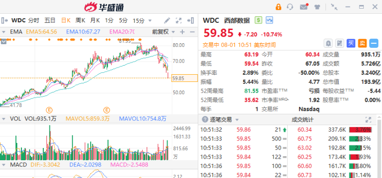 周四,西部数据(WDC.US)股价走低,截至发稿,该股跌超10%,报69.85美元。公司2025财年Q1指引疲软。