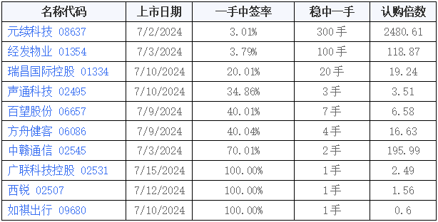 一方面,7月单月新股上市数量为今年以来最高。7月有10只新股登陆港交所,其中主板上市9家,创业板上市1家。同时,认购情绪也足够火热,认购倍数超100倍有3家。