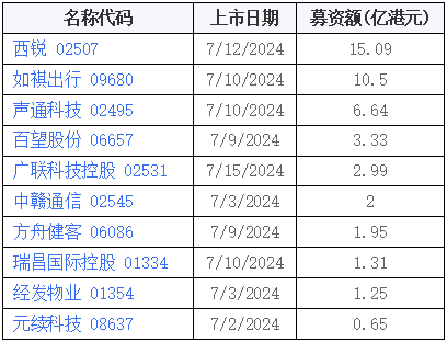 7月港股IPO市场依旧维持较小的集资规模,西锐飞机以15.09亿港元的募资额,成为7月募资王。