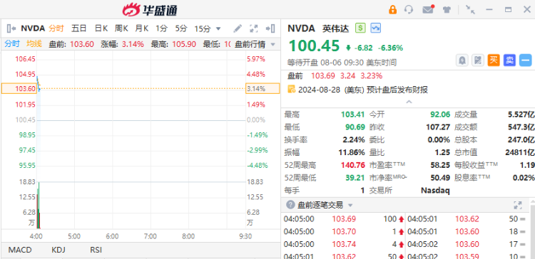 华盛资讯8月6日消息,三大期指盘前反弹,纳指期货 $NQmain 涨1.03%,标普期货 $ESmain 现涨0.83%,道指期货 $YMmain 涨0.51%。