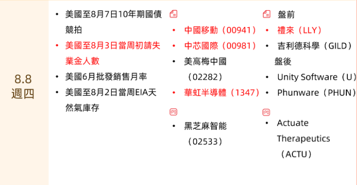 中国移动、中芯国际、美高梅中国、华虹半导体