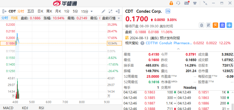 Conduit $CDT 盘前续涨逾10%,公司与阿斯利康达成药物许可协议。