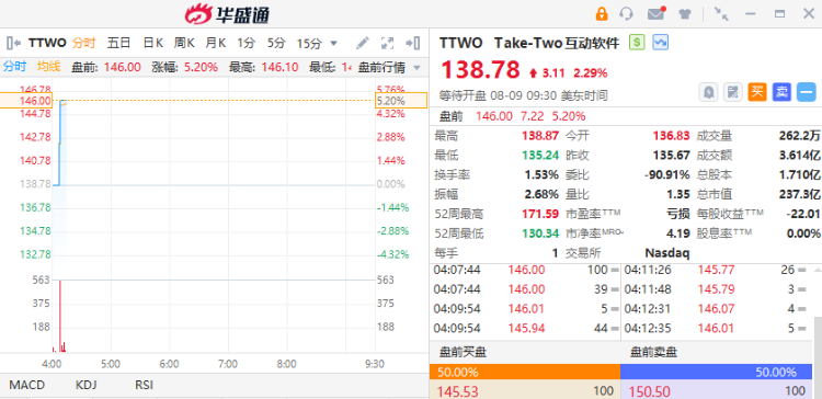 Take-Two互动软件盘前涨超5%,正为明年推出大热游戏《侠盗猎车手GTA 6》做准备。