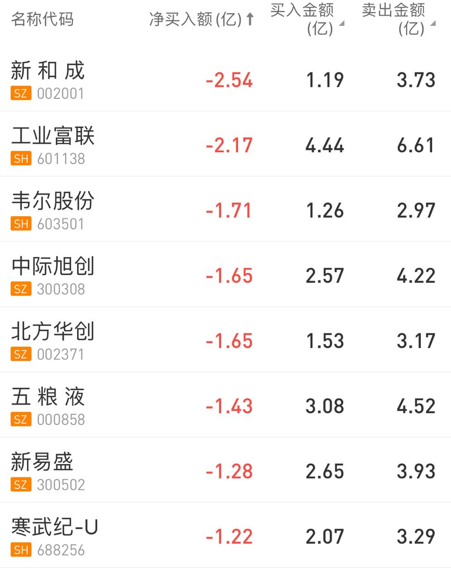 紫金矿业、万科、药明康德分别净买入1.98亿元、1.34亿元、1.26亿元;新和成获净卖出2.54亿元。