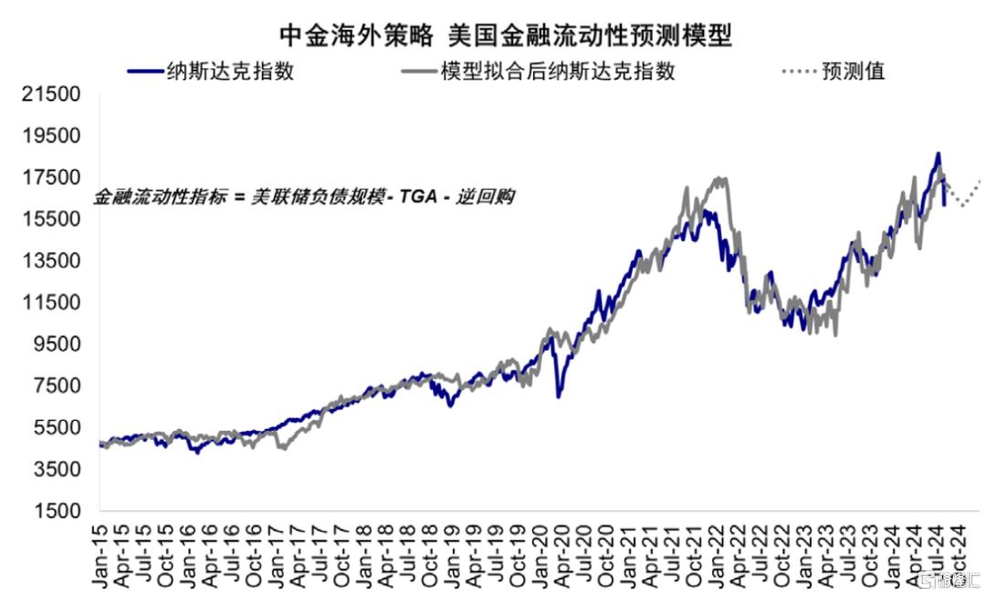 图表18:美联储持有资产- TGA- 逆回购代表的流动性指标和美股有很强的相关性