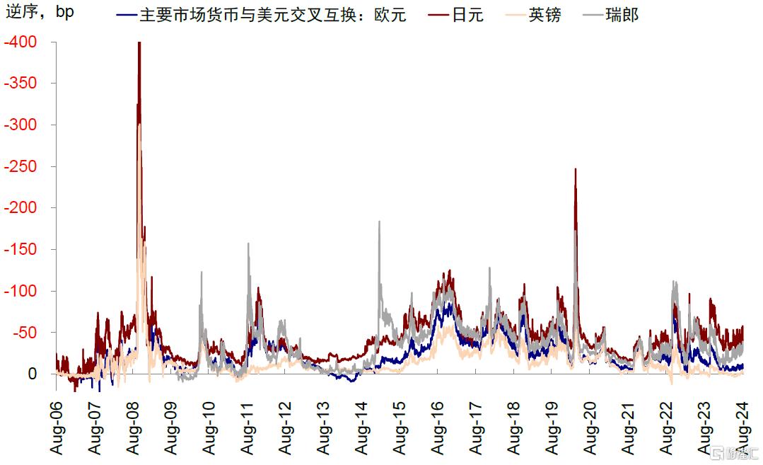 ► 离岸美元流动性指标:主要市场汇率与美元的交叉互换基差是常用来衡量离岸美元流动性的重要指标,基差走阔体现为离岸美元市场的流动性稀缺。