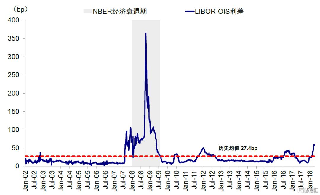 图表7:LIBOR-OIS利差快速抬升,一度飙升至超300bp
