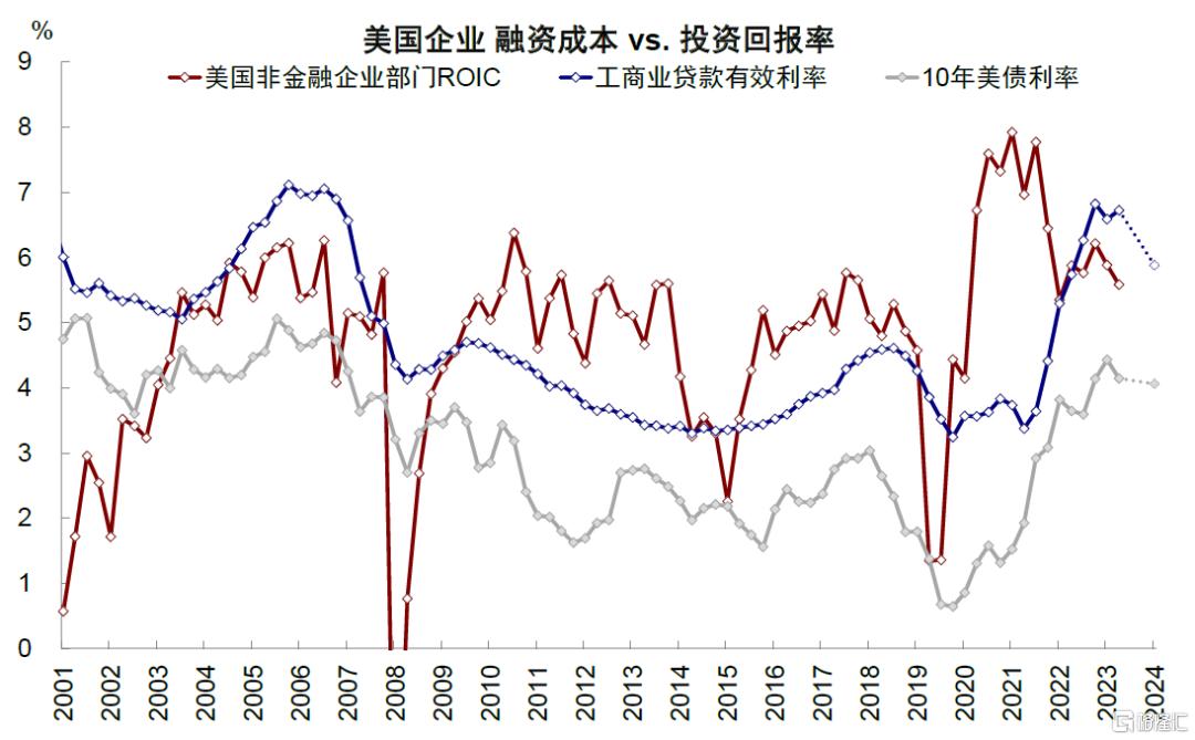 ► 利润表的问题:融资成本与投资回报率之间的此消彼长;降息是政策的主要应对方式。美联储紧缩背景下,融资成本抬升是商业银行、非银金融机构、企业和居民部门等各个环节共同面临的问题(《详解中美各部门融资成本与负担》)。金融条件收紧会导致经济整体收缩,增长动能趋弱,甚至可能引发不同程度的衰退,体现为企业利润表的收入和利润下滑。面对融资成本高企带来的增长下行问题,美联储可以通过调节政策利率影响金融机构融资成本,进而向实体部门传导,如普通的降息或加息。如1994年或2019年中规中矩的降息,与此次较为类似(《降息交易手册》)。但高通胀时期面临的问题可能更为棘手,届时即便增长面临下行压力,央行也很难很快转向,而过紧的货币政策则会将经济拖入深度衰退。例如,70年代末80年代初的美国滞胀(《复盘美国历次衰退的历史经验》)。