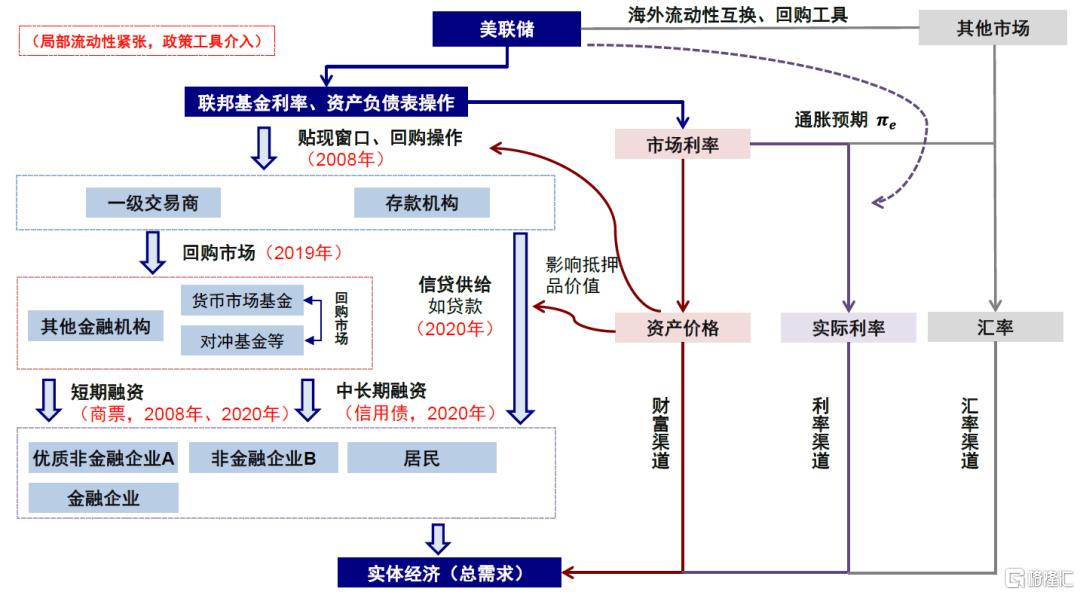 在传统的信贷传导渠道下,美联储作为流动性的调节主体,通过公开市场操作调控市场利率和货币供给,从而影响商业银行等中介机构向实体经济扩张信贷的能力。但风险事件发生后,局部环节的流动性不足使得美联储需要“对症下药”,定点的投放流动性。常规操作(加息或降息)自不必说,本文中我们将重点聚焦非常规的政策工具,即如何操作与对谁操作?