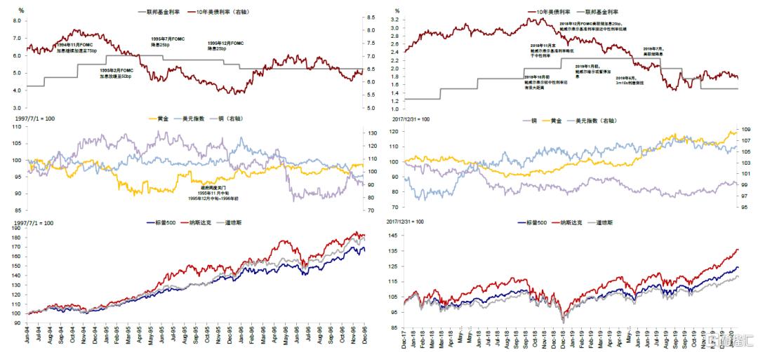 图表2:美联储可以通过调节政策利率影响金融机构融资成本,进而向实体部门传导,如1994年或2019年中规中矩的降息与此次类似